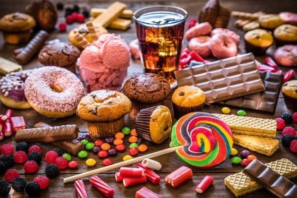 Gợi ý: bánh ngọt, nước ngọt có gas, kẹo, bánh mì trắng.