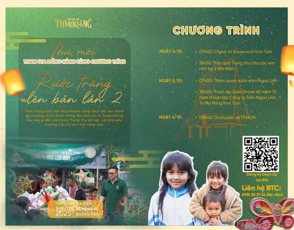 Nhằm tiếp nối hành trình lan tỏa yêu thương, chúng tôi trân trọng kính mời quý khách hàng, đối tác và nhà tài trợ tiếp tục đồng hành cùng chương trình “Rước Trăng Lên Bản” lần 2 – một sự kiện Trung Thu ý nghĩa dành cho trẻ em vùng cao.