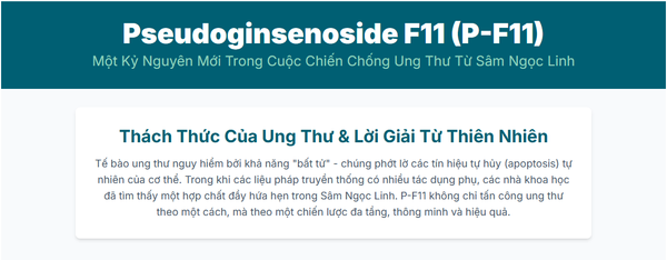 Ung thư, căn bệnh thế kỷ với sự phát triển không kiểm soát của các tế bào bất thường, luôn là một thách thức lớn đối với y học toàn cầu. Các phương pháp điều trị truyền thống như hóa trị, xạ trị dù hiệu quả nhưng thường đi kèm với nhiều tác dụng phụ. Do đó, việc tìm kiếm các hợp chất tự nhiên có khả năng tiêu diệt tế bào ung thư một cách chọn lọc và an toàn luôn là ưu tiên hàng đầu. Trong cuộc tìm kiếm đó, Pseudoginsenoside F11 (P-F11), một saponin độc đáo từ Sâm Ngọc Linh, đang nổi lên như một ngôi sao hy vọng với cơ chế chống ung thư đa tầng, tinh vi và đầy tiềm năng.