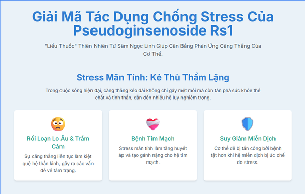 Stress không chỉ là cảm giác mệt mỏi, nó là một phản ứng sinh hóa có thể gây hại cho toàn bộ cơ thể. Hiểu được điều này, việc tìm kiếm các giải pháp tự nhiên để điều hòa phản ứng stress là vô cùng quan trọng. Pseudoginsenoside Rs1, với vai trò là một "nhạc trưởng" tài ba điều khiển dàn nhạc HPA, chính là món quà quý giá mà thiên nhiên ban tặng, giúp chúng ta tìm lại sự cân bằng và bình yên trong cuộc sống hiện đại.
