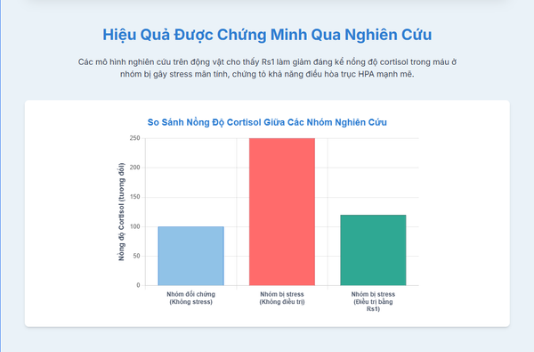 1. Tái Thiết Lập Độ Nhạy Của Cơ Chế Phản Hồi Ngược: Một trong những tác động quan trọng nhất của Rs1 là khả năng phục hồi độ nhạy của các thụ thể glucocorticoid (GR) ở vùng dưới đồi và đồi thị. Đây chính là các "cảm biến" nhận tín hiệu từ cortisol để kích hoạt cơ chế phản hồi ngược. Stress mãn tính làm giảm số lượng và độ nhạy của các thụ thể này. Rs1 giúp tăng cường biểu hiện và chức năng của GR, làm cho cơ chế "tắt" của trục HPA hoạt động trở lại hiệu quả. Kết quả là, nồng độ CRH, ACTH và cortisol được điều chỉnh giảm xuống mức bình thường, giúp cơ thể thoát khỏi vòng luẩn quẩn của stress.