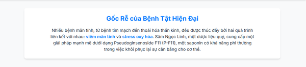 Viêm và stress oxy hóa là hai quá trình sinh học có liên quan mật thiết, được xem là "gốc rễ" của rất nhiều bệnh lý mãn tính trong thời đại hiện đại, từ bệnh tim mạch, tiểu đường, viêm khớp đến thoái hóa thần kinh và thậm chí là ung thư. Việc tìm kiếm các giải pháp tự nhiên để kiểm soát hai quá trình này luôn là mục tiêu của y học phòng ngừa. Và một lần nữa, Sâm Ngọc Linh lại mang đến câu trả lời với hợp chất Pseudoginsenoside F11 (P-F11), một saponin sở hữu khả năng chống viêm và chống oxy hóa toàn diện và mạnh mẽ.