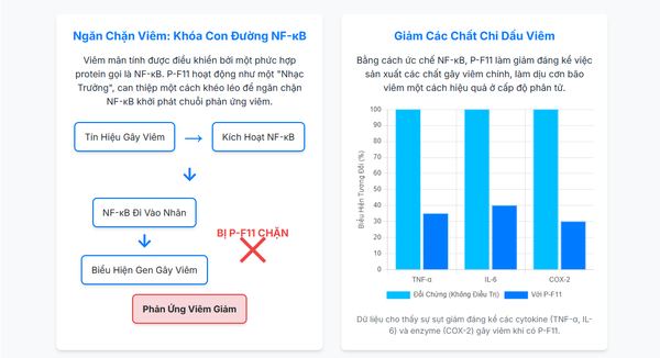 Đây chính là nơi P-F11 thể hiện vai trò "nhạc trưởng" của mình. Các nghiên cứu đã chỉ ra một cách thuyết phục rằng P-F11 là một chất ức chế mạnh mẽ con đường tín hiệu NF-κB.