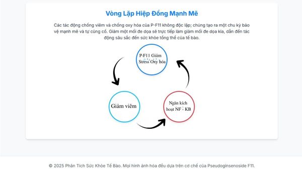 Điều quan trọng cần nhấn mạnh là tác dụng chống oxy hóa và chống viêm của P-F11 không hề độc lập. Chúng tạo thành một vòng lặp tương hỗ tích cực: