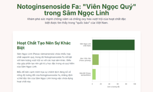 Sâm Ngọc Linh, loài “quốc bảo” quý hiếm của Việt Nam, từ lâu đã được biết đến với những công dụng y học tuyệt vời. Bên cạnh các hoạt chất saponin đặc trưng, một hợp chất đặc biệt đang thu hút sự chú ý của giới khoa học là Notoginsenoside Fa. Các nghiên cứu gần đây cho thấy hoạt chất này mang lại tác dụng chống viêm và chống oxy hóa mạnh mẽ, mở ra những tiềm năng to lớn trong việc bảo vệ sức khỏe con người.