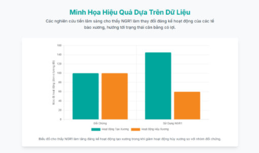 NGR1 làm tăng hoạt động của enzyme alkaline phosphatase (ALP) và thúc đẩy sự hình thành các nốt khoáng hóa, đây là những dấu hiệu quan trọng của quá trình hình thành xương.