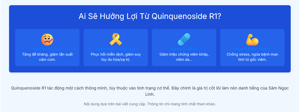 Nhờ khả năng "điều hòa" kép này, Sâm Ngọc Linh chứa Quinquenoside R1 mang lại lợi ích cho nhiều nhóm đối tượng: