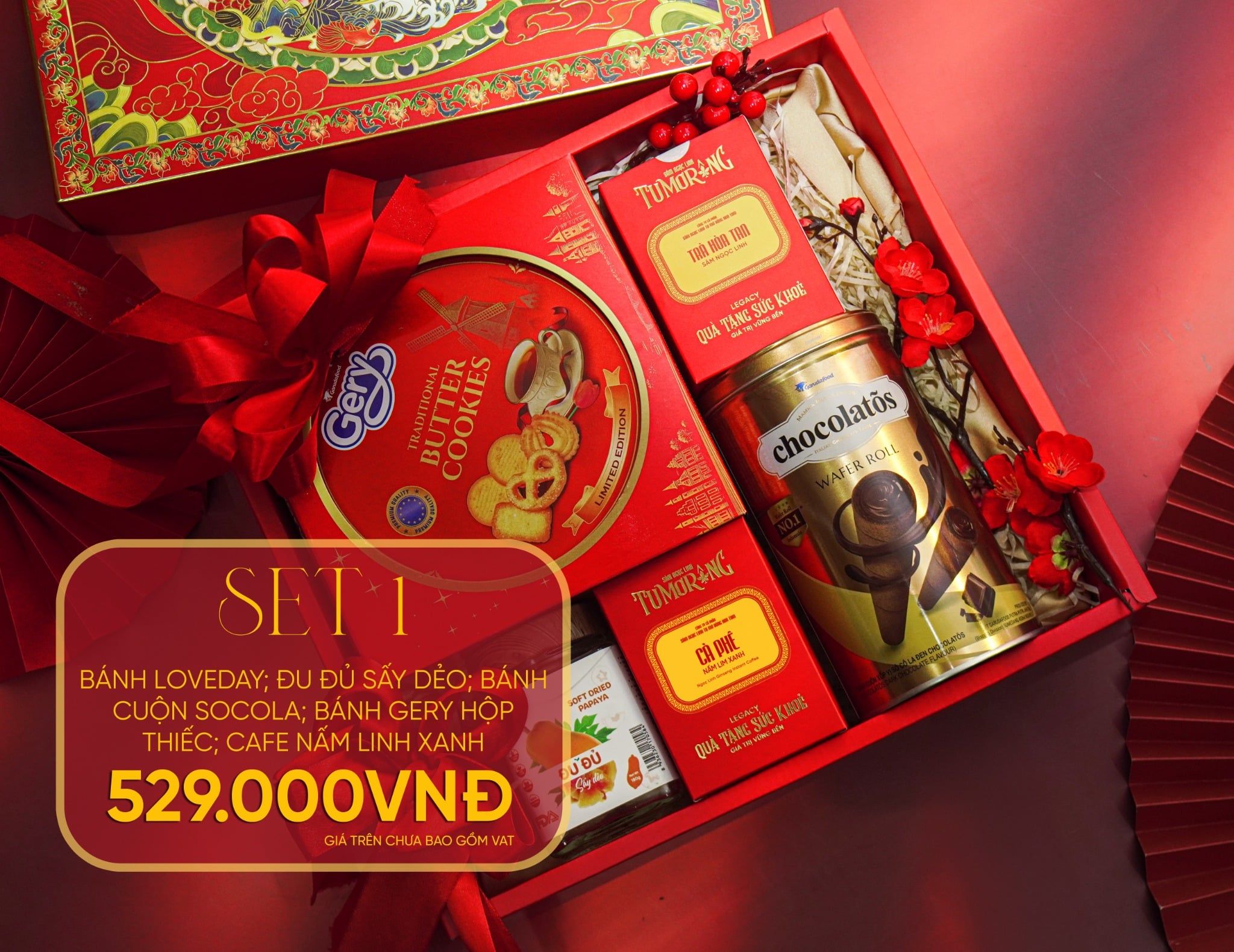 Set quà Tết giá tốt chỉ hơn 500k, kết hợp bánh kẹo nhập khẩu cao cấp và Cà phê Nấm Lim Xanh độc đáo. Món quà ý nghĩa, thiết kế sang trọng cho Xuân Bính Ngọ 2026.