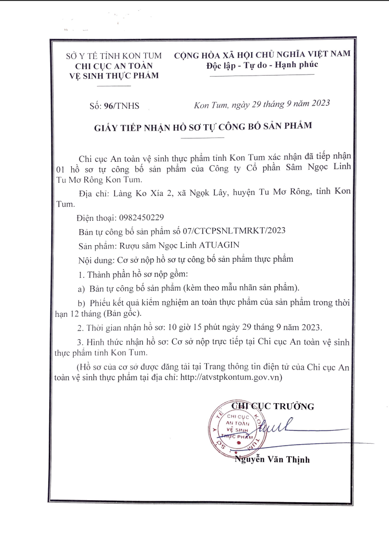 Rượu Sâm Ngọc Linh Atuagin là niềm tự hào của thương hiệu Sâm Ngọc Linh Tu Mơ Rông Kon Tum.